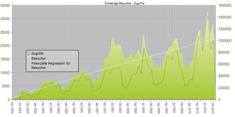Eindeutige Besucher und Zugriffe - historische Ansicht