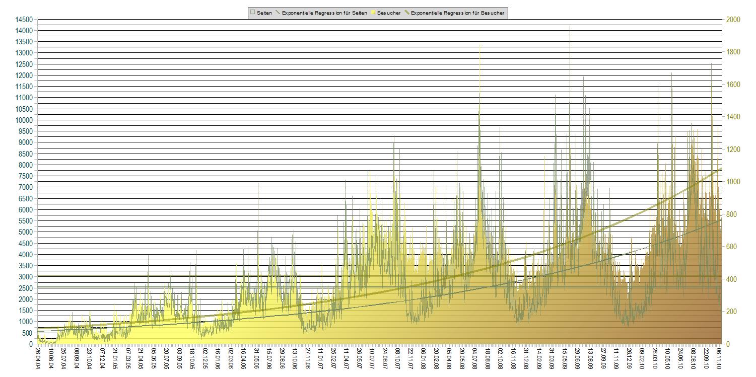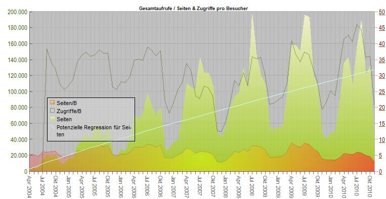 Seiten und Zugriffe pro Besucher - historische Ansicht