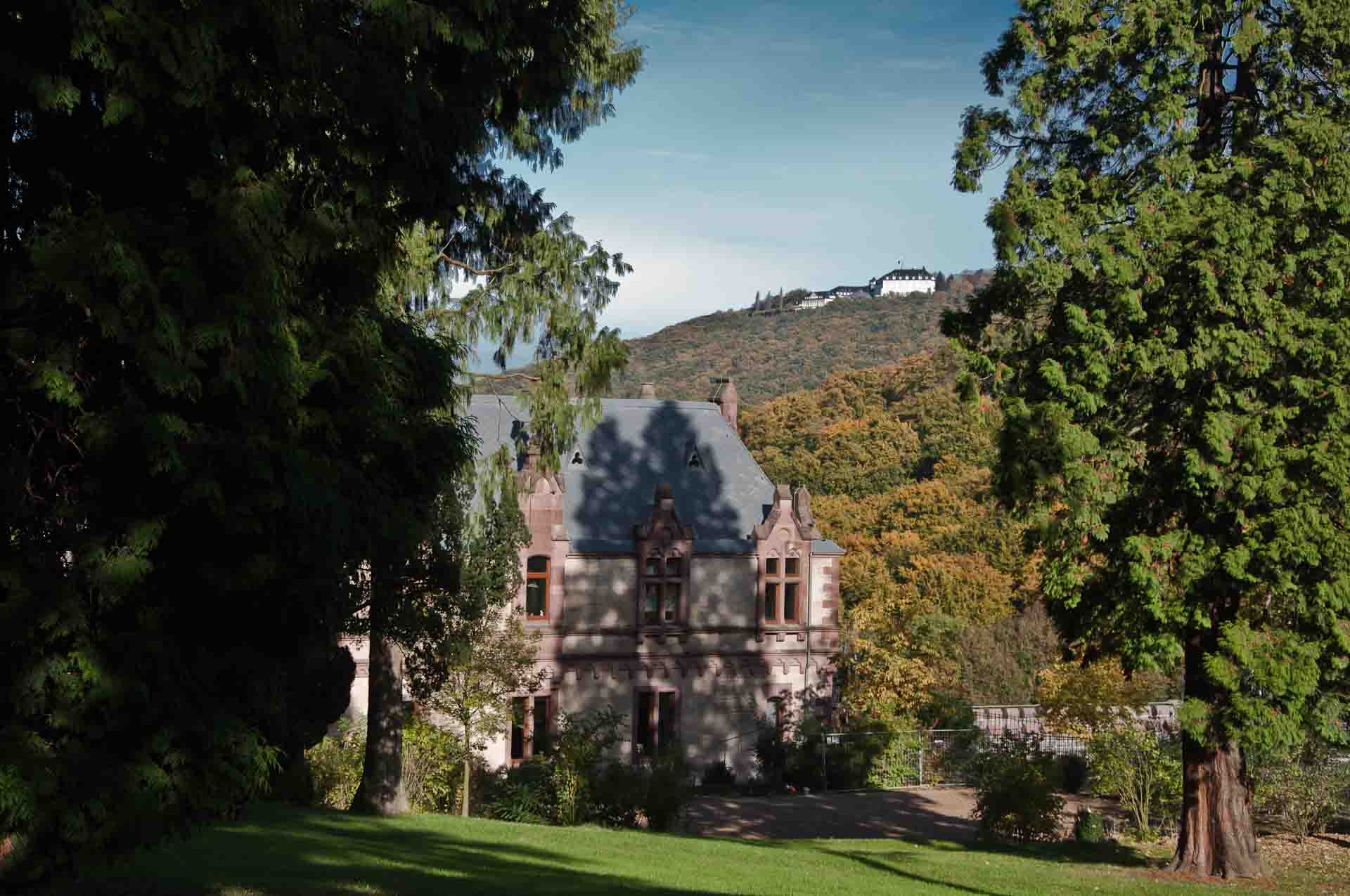 Drachenburg oberhalb der Mittelstation der Drachenfelsbahn.